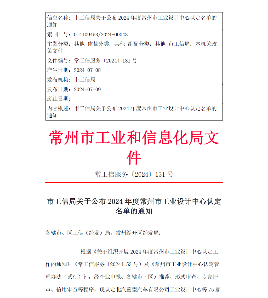 熱烈祝賀我司制造工廠順利入選《2024年度常州市工業(yè)設(shè)計(jì)中心》