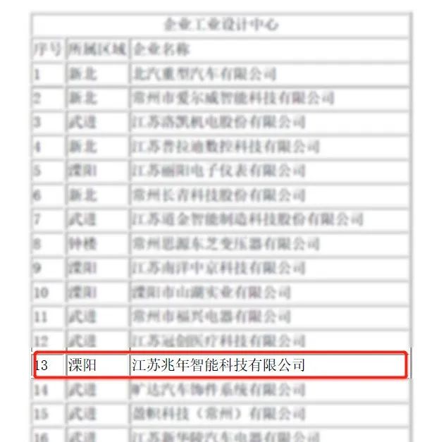 2024年7月9日,我司制造工廠江蘇兆年智能科技有限公司順利入選《2024年度常州市工業(yè)設(shè)計(jì)中心》。