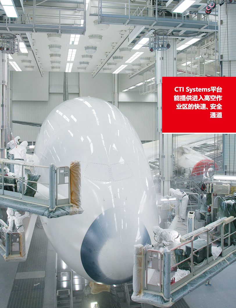 CTI升降平臺提供進入架空工作區(qū)的決速、安全通道。伸縮臂懸掛在專門設(shè)計、能在行車整跨任意點上方通行的小車上。